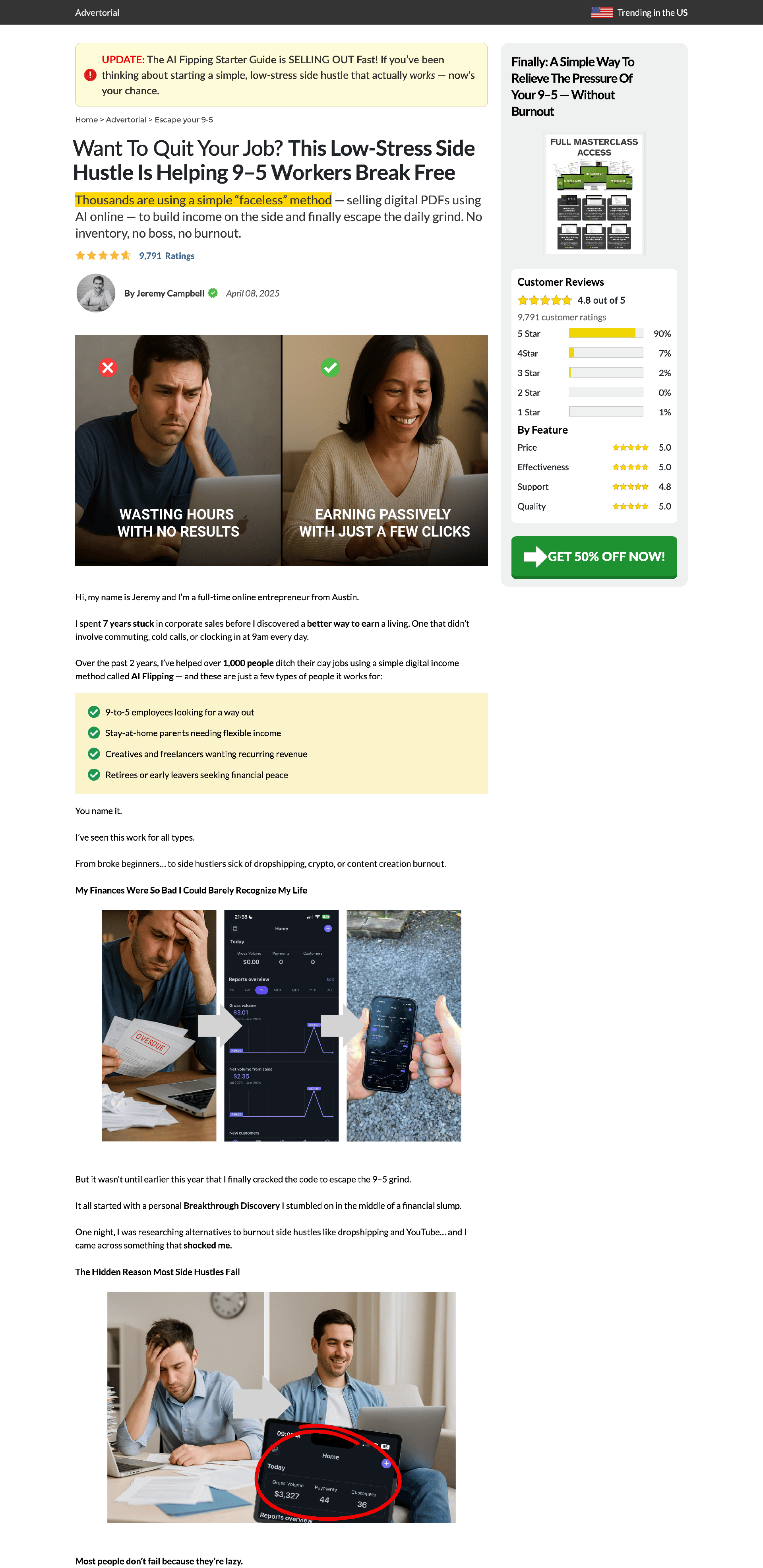 Build trust fast with simple “Before/After,” “Customer Story,” and “Top 5 List” advertorials.